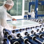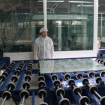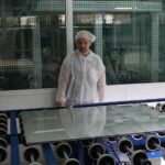 U prvoj komori u koju smo ušli vladaju posebni uvjeti: vlaga i toplota osjećaju se intenzivno. Radnici, uvijek njih dvoje, odjeveni u posebne bijele odore koje štite staklo od kontaminacije sitnim česticama prljavštine, trunjem, dlakom, obavljaju poluautomatiziran posao uz pomoć velikih mašina, robota.