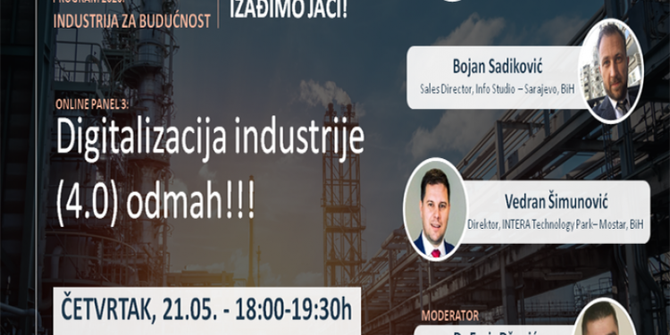 U četvrtak, 21.05.2020. godine je održana šesta po redu panel diskusija na temu “Digitalizacija industrije (4.0.) odmah!!!“ u sklopu kampanje “IZAĐIMO JAČI”, a u organizaciji kompanije Targer Engineering and Consulting. I ova panel diskusija je podržana od strane Deutsche Gesellschaft für Internationale Zusammenarbeit (GIZ) GmbH, u ime Njemačke vlade, u sklopu cjelokupnog programa pod nazivom “Industrija za budućnost”.