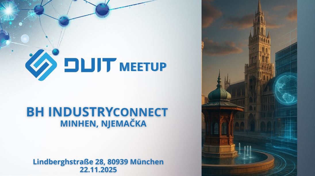 U organizaciji Društva za unapređenje industrije i tehnologije (DUIT), 22. novembra 2025. godine u Minhenu će se održati poslovni događaj BH IndustryConnect MeetUp Minhen 2025. Ovaj susret bosanskohercegovačkih privrednika, stručnjaka, studenata i predstavnika dijaspore ima poseban značaj jer se održava u periodu obilježavanja Dana državnosti Bosne i Hercegovine.